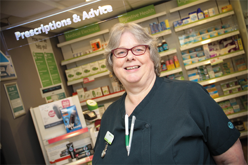 Jane’s main role is looking after the pharmacy’s dosette boxes and she works through around 130 of these every month. “I do all the paperwork as well and I do a little bit of normal dispensing now and then, but the dosette boxes and paperwork take up 90 per cent of my time,” she says. But it doesn’t end there, as Jane explains: “We all go out to the shop floor as and when we’re needed so we can do one-to-one with customers too. I tend to talk to all the customers with asthma because I have asthma myself so I have that extra knowledge and can teach proper inhaler technique and so on because I’m used to it. I think that really reassures customers too.”