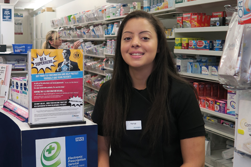 For Kayleigh, being on first name terms with her regular customers is an important part of the service she offers and lots of customers ask for her by name when they come in. “We can have a laugh and a chat – customers might not come in smiling but they leave laughing and I think it’s very important because it makes it not so serious,” she says. “Obviously you’ve got to maintain a professional relationship but it breaks the barrier and makes them trust you when you’ve got a health message to give. It helps to be on the same level.” Kayleigh prides herself on being able to make a difference to not only customers’ healthcare but their lives too. “Older customers especially come in and have a five minute chat and then go about their day – you might be the only person they have to talk to so that really matters,” she says.