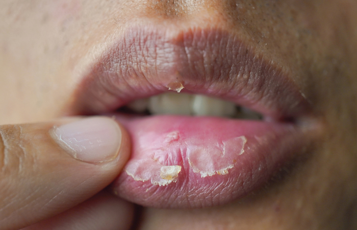 “Hot, painful, red and swollen lips may be a sign of an infection”