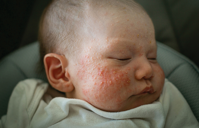 Parents should be referred to the pharmacist if the baby’s eczema is not improving with regular moisturising, or if it becomes very red, weepy, crusted or itchy. Also refer if the baby seems to be in pain, or if there are any signs of infection, such as oozing, swelling or fever.