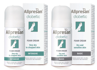 Of the 3.2 million people with diabetes in the UK, an estimated 80 per cent will suffer some form of skin problem. Allpresan Diabetic Foam Cream is clinically proven to prevent and treat dry, cracked skin and calluses on the feet of people with diabetes, according to manufacturer Neubourg Pharma UK. It is available in two strengths: Allpresan Intensive 10% Urea for very dry to cracked skin at risk of infection and ulceration in patients with diabetes mellitus in 35ml (RRP £4.99) and 125ml (RRP £10.99); and Allpresan Basic 5% Urea also available in 35ml (RRP £4.99) and 125ml (RRP £10.99) €“ a preventative treatment for dry, sensitive and parchment-like skin in patients with diabetes.