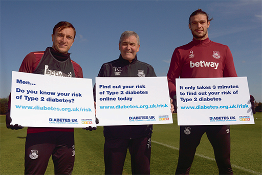 Diabetes UK has teamed up with West Ham United FC to encourage more men to find out their risk for type 2 diabetes, as part of the charity's 'Know Your Risk' campaign. The campaign follows research showing that one million people have accessed the charity's Know Your Risk online assessment tool, which calculates people's chances of developing the condition in the next 10 years. However, 38 per cent more women than men are using the tool, despite the fact that men are at greater risk of type 2 diabetes than women.