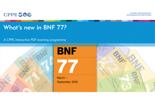 The What’s new in BNF 77? distance learning programme from CPPE is an interactive programme accompanying the 77th edition of the BNF, which was released in March 2019, and highlights the key changes through a series of 10 case studies.