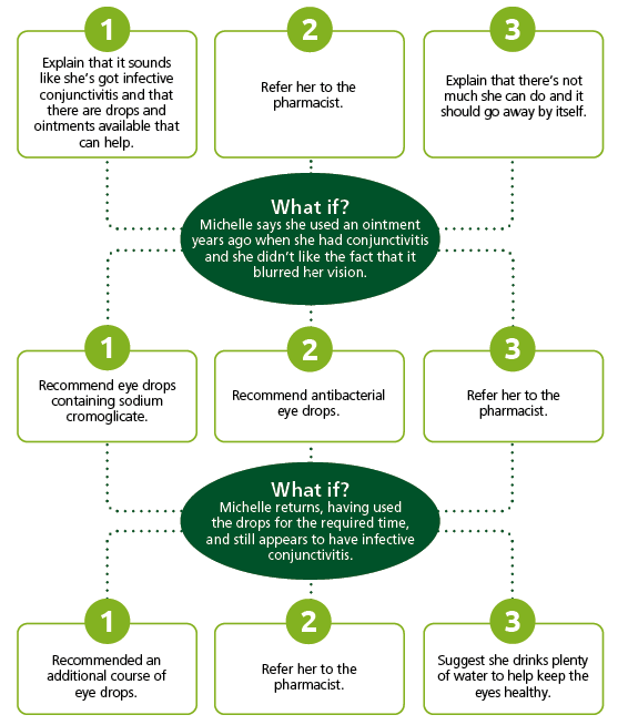 For each part of this scenario, think about the decision you would make and, importantly, why you would choose that option. In addition, for each decision that you make, think about how you would talk to the customer and provide the necessary advice. Discuss this with your team and pharmacist.
