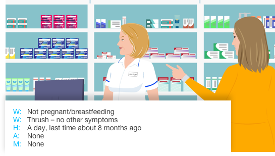 She has had thrush before and knows that it is thrush, so this is not the most appropriate choice